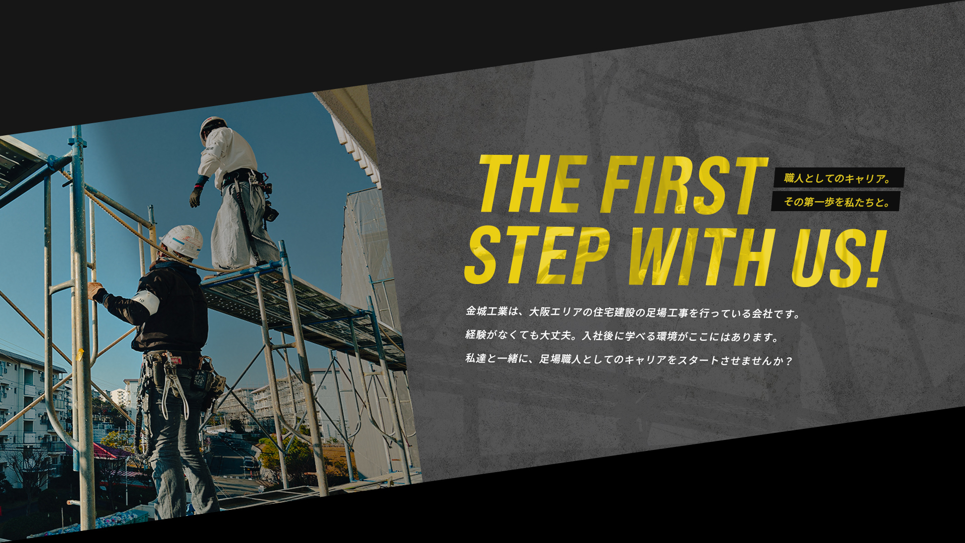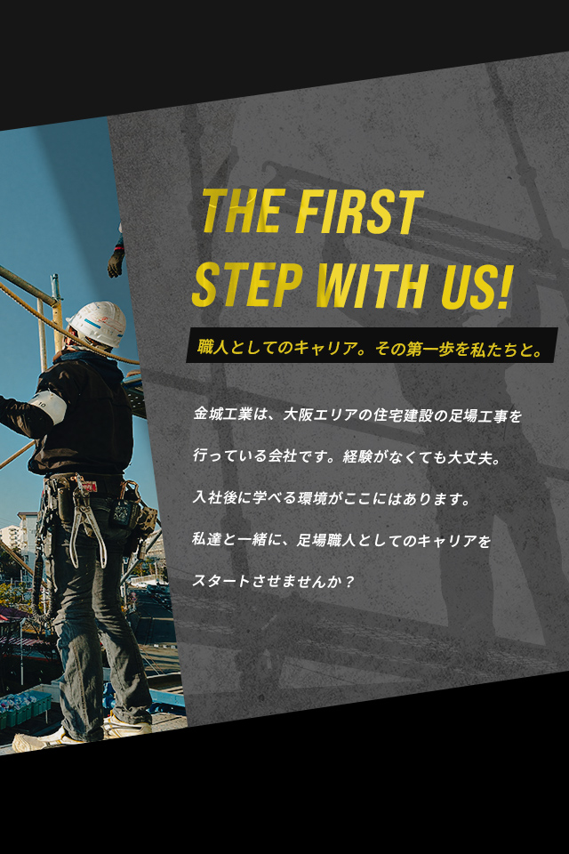 金城工業は、大阪府四条畷市を拠点に足場工事を手掛けております。大阪を拠点に、私たちは高度な技術能力を持って活動し、多くのお客様から絶大な信頼を受けています。私たちの業務は、ただ単に足場を組むだけでは終わりません。技術職としての誇りを胸に、お客様の現場に最適な足場を提供すること。そのすべては、経験に基づいた技術やコミュニケーションのノウハウが生む価値です。金城工業として、この価値を一緒に築く職人を募集中です。あなたも私たちと共に、この技術の世界に足を踏み入れてみませんか?